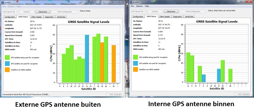 Wij hebben om een indruk te krijgen de 2 transponders voor het raam gelegd in ons kantoor zonder de externe GPS antennes.